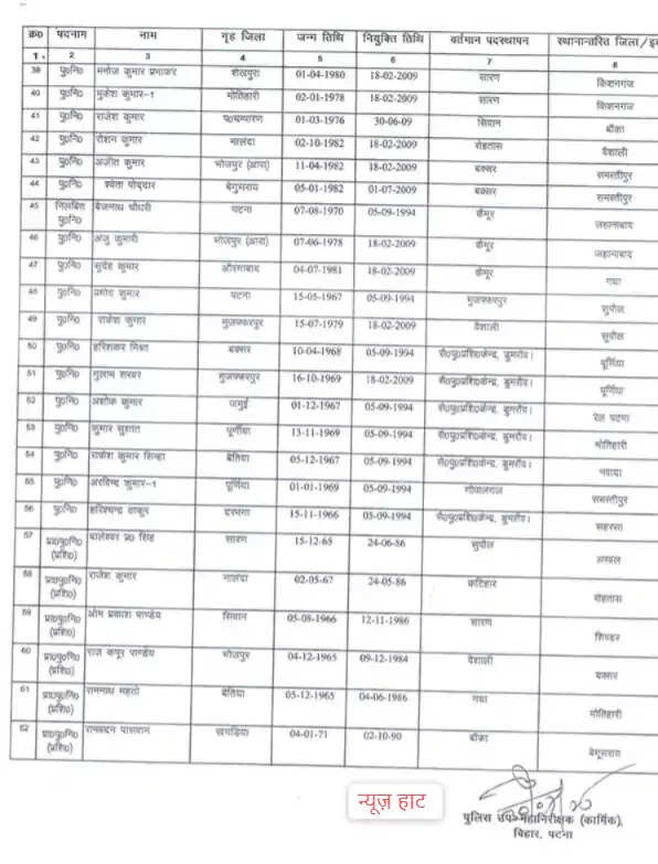 बिहार पुलिस ट्रांसफर: बिहार पुलिस इंस्पेक्टरों के जोन ट्रांसफर, यहां देखें पूरी लिस्ट