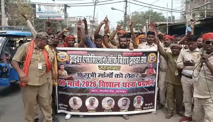जहानाबाद में ड्राइवरों का हुंकार: 10 सूत्री मांगों को लेकर कारगिल चौक पर जोरदार धरना-प्रदर्शन