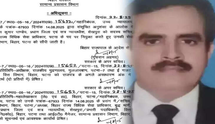 ध्यान रहे कि न्यायाधिश पवन कुमार पाण्डेय वर्तमान में शेखपुरा सिविल कोर्ट में प्रधान जिला एवं सत्र न्यायाधीश के पद पर तैनात हैं. सामान्य प्रशासन विभाग द्वारा जारी अधिसूचना में स्पष्ट रूप से उल्लेख किया गया है कि उनकी सेवा बिहार राज्य विधिक सेवा प्राधिकार पटना में सदस्य सचिव के पद पर पदस्थापित करते हुए सामान्य प्रशासन विभाग, बिहार सरकार को सौंपी जाती है.