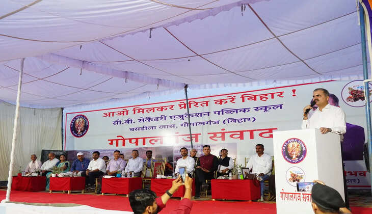 सीबीएसई पब्लिक स्कूल परिसर में आयोजित “गोपालगंज संवाद” कार्यक्रम के दौरान अभियान से जुड़े वक्ताओं ने शिक्षा और सामाजिक बदलाव को लेकर अपनी बात रखी। इस अवसर पर विद्यालय के निदेशक जितेंद्र जी और प्राचार्या पिंकी राय को उनके सामाजिक योगदान के लिए सम्मानित किया गया।