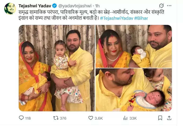 तेजस्वी यादव ने दिखाई अपने ‘पीतांबर परिवार’ की झलक, बेटे इराज की पहली तस्वीर ने सोशल मीडिया पर बटोरी वाहवाही