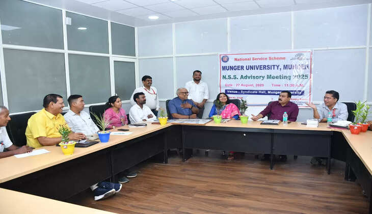 Munger: मुंगेर विश्वविद्यालय में राष्ट्रीय सेवा योजना (एनएसएस) की विश्वविद्यालय स्तरीय एडवाइजरी कमिटी की बैठक मंगलवार को सिंडिकेट हॉल में आयोजित की गई। बैठक की अध्यक्षता कुलपति डॉ. संजय कुमार ने की, जबकि संचालन एनएसएस कार्यक्रम समन्वयक डॉ. मुनींद्र कुमार सिंह ने किया।