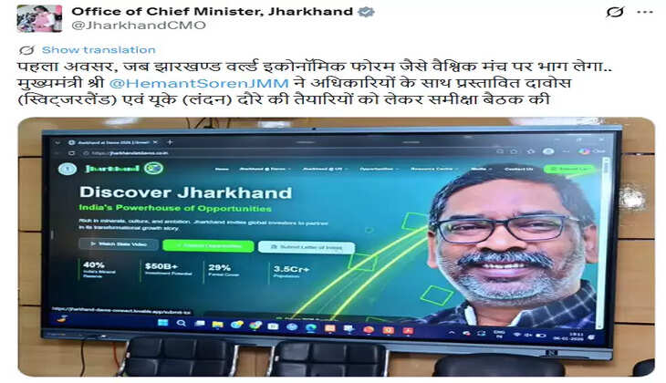 अधिकारियों ने बताया कि दावोस में प्रस्तावित बैठकों एवं कार्यक्रमों के माध्यम से झारखंड की खनिज संपदा, औद्योगिक ढांचा, सतत विकास आधारित दृष्टिकोण, पर्यटन क्षमता तथा निवेश की विविध संभावनाओं को वैश्विक मंच पर प्रस्तुत किया जाएगा. इस संबंध में विभागीय तैयारियां अंतिम चरण में हैं.