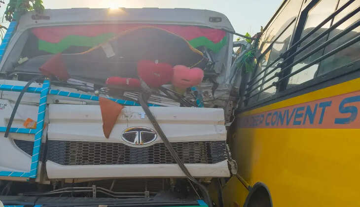 पलामू में मौत बनकर दौड़ी हाइवा! नेशनल हाईवे पर स्कूल बस को मारी भीषण टक्कर, खलासी की मौके पर दर्दनाक मौत, दर्जनों मासूम बच्चे बाल-बाल बचे
