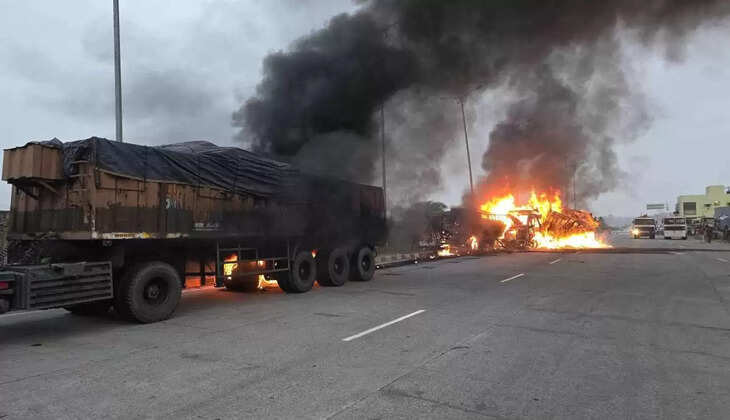 गिरिडीह में दिल दहला देने वाला हादसा, तीन ट्रकों की टक्कर के बाद लगी आग, दो लोग जिंदा जल गए...