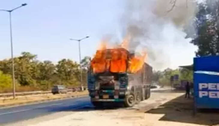 चलते-चलते अचानक धधकने लगी भयंकर आग, देखते ही देखते ट्रक बन गया आग का गोला...