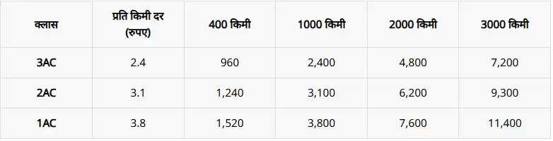 न्यूनतम किराया 400 किलोमीटर की दूरी के लिए है. इसमें GST अलग से लागू होगा. इसके अलावा महिलाओं, वरिष्ठ नागरिकों और दिव्यांग यात्रियों के लिए कोटा रहेगा, साथ ही रेलवे कर्मचारियों के लिए ड्यूटी पास कोटा भी निर्धारित किया गया है.