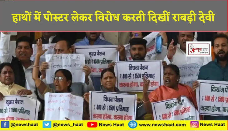 बिहार में इसी साल विधानसभा चुनाव होंगे। नीतीश सरकार के अंतिम बजट के दिन विधानमंडल में बिहार और अंदर दोनों ही जगहों पर विपक्षी सदस्यों का जमकर हंगामा देखने को मिला। राज्य की पूर्व मुख्यमंत्री और विधान परिषद की नेता प्रतिपक्ष राबड़ी देवी भी पूरे ऐक्शन में नजर आईं। बिहार विधान सभा के द्वार पर विपक्ष के विधायक हाथ में पोस्टर लिए प्रदर्शन करते नजर आए। राबड़ी देवी के हाथ में भी पोस्टर नजर आया। राबड़ी देवी के हाथ में जो पोस्टर था उसमें विधवा पेंशन का जिक्र नजर आया। इस पोस्टर में विधवा पेंशन 400 से 1500 रुपया प्रतिमाह करने की मांग की गई थी।