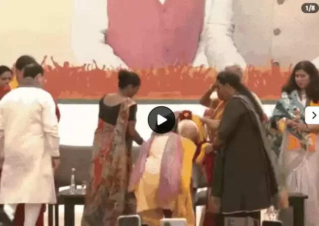 महिला आरक्षण बिल पास होने पर PM मोदी ने महिला कार्यकर्ताओं के छुए पैर