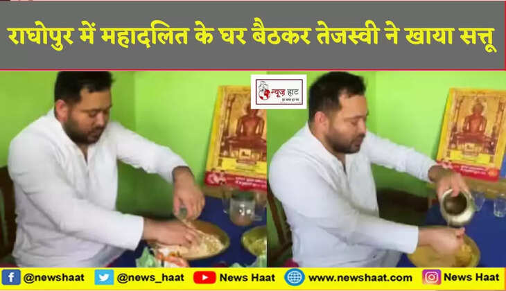 ठेठ देहाती अंदाज में दिखे तेजस्वी, राघोपुर में महादलित के घर बैठकर खाया सत्तू